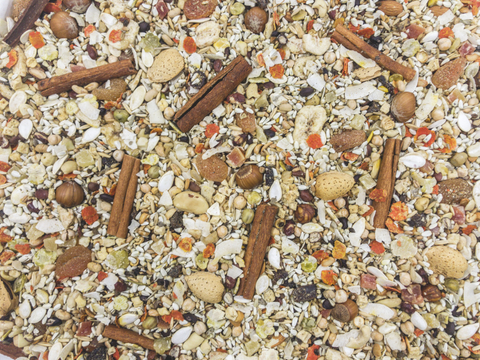 The ancient Maya foraged the jungles and harvested the earth for fruits, vegetables, seeds, nuts, legumes and medicinal herbs. They considered the native birds of Mexico, Central and South America to be one of the most sacred animals in their world. Inspired by this, Mayan Harvest Natural Holistic Blends offer a variety of exotic, natural ingredients and herbs balanced in a holistic diet free of synthesized vitamins, sulfites, and artificial colors, flavors and preservatives. Mayan Harvest blends are rich in balanced omega-3 & 6 fatty acids to support the immune system. Protected probiotics are also added to promote digestive health and immunity by supporting the delivery of more active, beneficial bacteria to the intestinal tract. Mayan Harvest Celestial does not contain peanuts, corn or sunflower seeds and has cinnamon sticks parrots and larger birds love. Try all the Mayan Harvest blends and let your bird discover the benefits of the healthy nutrition with a holistic touch.