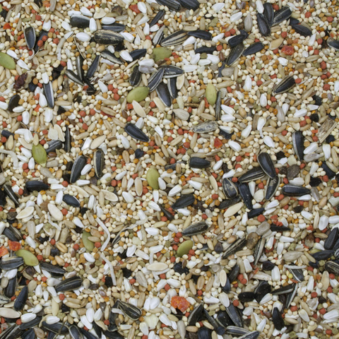 White Millet, Oats, Safflower, Sunflower Seeds, Red Millet, Wheat, Ground Corn, Flaxseed, Buckwheat, Canary Seeds, Papaya, Brown Rice, Soybean Meal, Cantaloupe Seeds, Flaked Carrots, Coconut, Pumpkin Seeds, Raisins, Pineapple, Almonds, Cashews, Walnuts, Sugar, Canola Oil (preserved with mixed tocopherols), Dicalcium Phosphate, Dried Egg Product, Calcium Carbonate, Alfalfa Nutrient Concentrate, Algae Meal, Salt, Dried Enterococcus Faecium Fermentation Product, Dried Lactobacillus Acidophilus Fermentation Product, Dried Lactobacillus Casei Fermentation Product, Cranberries, Apples, Blueberries, Celery, Beets, Parsley, Lettuce, Spinach, Watercress, Brewer?s Dried Yeast, DL-Methionine, L-Lysine, Choline Chloride, Mixed Tocopherols (preservative), Rosemary Extract, Potassium Chloride, Yeast Extract, Iron Oxide, L-Carnitine, Vitamin A Supplement, Vitamin D3 Supplement, Vitamin E Supplement, L-Ascorbyl-2-Polyphosphate (Source of Vitamin C), Zinc Sulfate, Ferrous Sulfate, Niacin, Folic Acid, Biotin, Manganese Sulfate, Copper Sulfate, Calcium Pantothenate, Thiamine Mononitrate, Pyridoxine Hydrochloride, Riboflavin Supplement, Zinc Proteinate, Manganese Proteinate, Copper Proteinate, Calcium Iodate, Sodium Selenite, Cobalt Carbonate, Vitamin B12 Supplement, Color Added (Annatto Extract, Turmeric, Beet Juice), Natural Citrus Flavor, Natural Banana Flavor, Natural Pineapple Flavor.