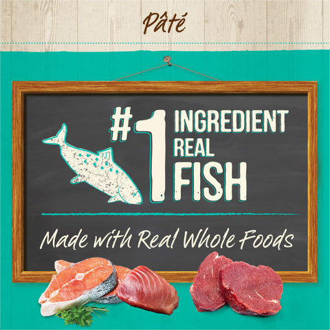 Crafted for cats who appreciate the finer things, this Merrick Purrfect Bistro Seafood Variety Pack features 12 tasty 5.5 oz cans in three popular seafood recipes: Surf and Turf, Salmon, and Tuna. This highly digestible cat food pack features deboned fish and beef as the first ingredients for quality protein and great taste that even the most discerning of cat food connoisseurs will love. High quality, natural ingredients are finely ground to create a smooth pate cat food with the fishy taste cats crave. Purrfect Bistro grain free canned cat food recipes are high in essential fatty acids like Omega-3 and 6 for healthy skin and super soft fur. Packed with a variety of flavors your cat will love, this high protein cat food also features antioxidants to help support a healthy immune system. Merrick adult cat food recipes never use artificial colors, flavors or preservatives, and these sumptuous wet cat food pate recipes are crafted without wheat, corn, or soy for truly delicious and filling meals. Whether your cat prefers our Surf and Turf, Salmon, or Tuna cat food, Purrfect Bistro cat food pates are great for indoor and outdoor cats and come in a variety of recipes your cat will love. All Merrick recipes are crafted in our Hereford, TX kitchen and cooked in the USA, in facilities that uphold strict FDA guidelines. Merrick Purrfect Bistro Seafood Variety Pack Grain Free Wet Cat Food Pate Recipes. Real deboned fish and beef are always the first ingredients in these high protein cat food recipes. Grain free cat food high in essential fatty acids like Omega-3 and 6 for healthy skin and super soft fur.
