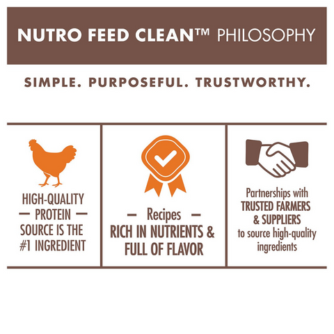 NUTRO WHOLESOME ESSENTIALS Senior Farm-Raised Chicken & Brown Rice Recipe Cat Food always starts with great-tasting chicken and contains a unique blend of whole grains. This natural cat food provides natural fiber for healthy digestion and essential antioxidants, such as vitamin E, for a healthy immune system, plus vitamins, minerals and other nutrients. These recipes are also crafted with taurine to help support heart health of senior cats. NUTRO Food for Cats follows the NUTRO FEED CLEAN philosophy, is always made with Non-GMO Ingredients and is made with no artificial flavors, colors or preservatives. *Trace amounts of genetically modified material may be present due to potential cross contact during manufacturing.