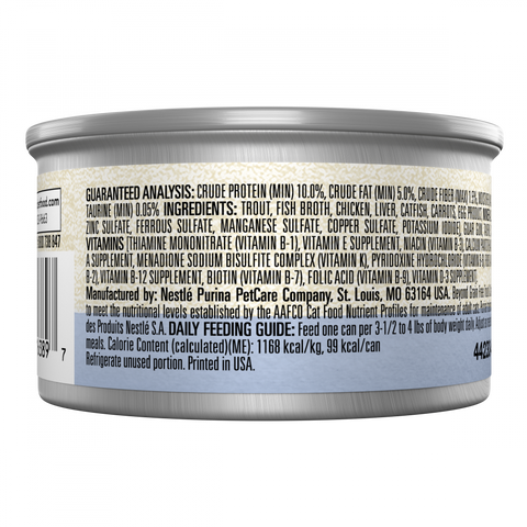 Make every meal an occasion for your cat with Purina Beyond Trout and Catfish Wet Cat Food Grain Free Recipe. With real trout as the number 1 ingredient, this pate cat food offers protein for muscle health and provides immune system support. This wholesome natural adult wet cat food with added vitamins, minerals, and nutrients is made without corn, wheat, soy, poultry by-products, artificial colors, flavors or preservatives. Express your love for your cat by serving them Purina Beyond Trout and Catfish Wet Cat Food Grain Free Recipe.
