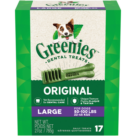 - Contains one (1) 12 oz. 8-count pack of GREENIES Original Large Natural Dental Dog Treats