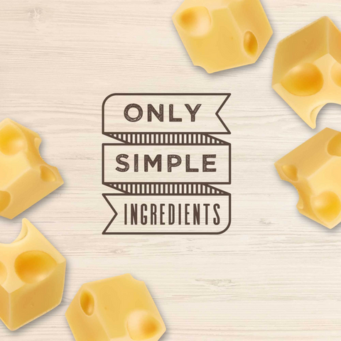 Pea flour, ground flaxseed, tapioca starch, chickpea flour, cheddar cheese, expeller pressed canola oil, mixed tocopherals (natural preservative)