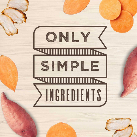 Chicken, chickpea flour, pea flour, tapioca starch, vegetable glycerin, sweet potatoes, ground flaxseed, phosphoric acid, xanthan gum, natural smoke flavor, maple syrup, sorbic acid (preservative), mixed tocopherols (preservative), rosemary extract.