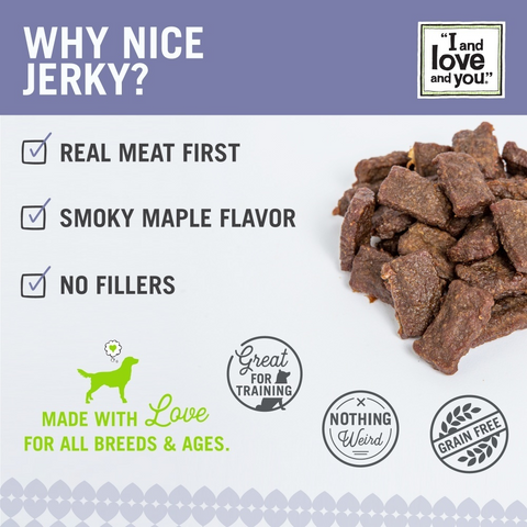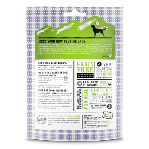 “NIIIIICE!” You’re gonna be saying that a lot, when you use these everyday treats to motivate and reward your pup! Each succulent jerky bite serves up a boatload of the good stuff like beef and pasture-raised lamb. The chewy dog treats are easy to tear and packed with lotsa protein which means your dog will have plenty of energy for playtime—and focus during training time! BTW: Nice Jerky! comes in a pawful of delicious and tasty flavors.