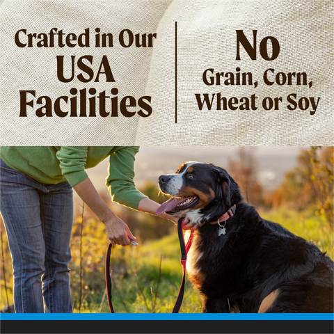 Cater to the needs of your large dog with Merrick Backcountry Grain Free Dog Food, Large Breed Recipe. Real deboned chicken is the first ingredient in this natural, with added vitamins, minerals, and nutrients recipe, a high protein dog food that helps big dogs maintain lean muscle mass and healthy energy levels. This real meat dog food with chicken and lamb contains a holistic blend of kibble and freeze-dried raw pieces inspired by an ancestral canine diet and crafted to provide the taste of raw dog food in a convenient recipe. High levels of Omega-6 and Omega-3 fatty acids nourish your dog’s skin and coat in this premium adult large breed dry dog food, as well as high levels of glucosamine and chondroitin to support healthy hips and joints. Backcountry Grain Free dry dog food is gluten free for a wholesome and healthy dog food option. Merrick Backcountry dog food recipes are proudly founded in Hereford, Texas, crafted in USA facilities.