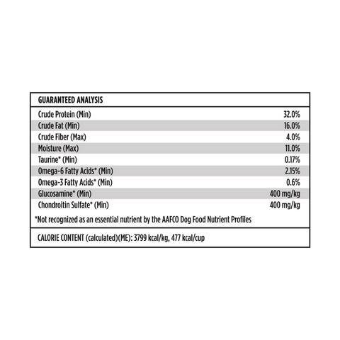 400 mg/kg min. *Not recognized as an essential nutrient by the AAFCO Dog Food Nutrient Profiles. |
