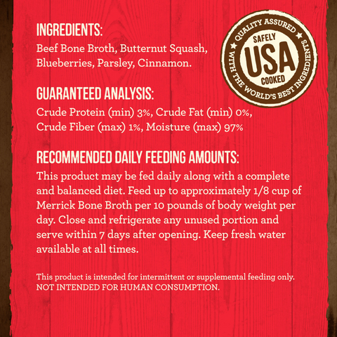 - Merrick Grain Free Beef Bone Broth, Human Grade Dog Food Meal Topper and Cat Bone Broth