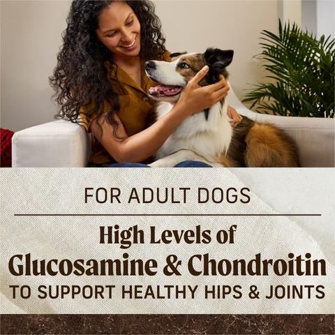 Serve your dog food they will love with Merrick Grain Free Dry Dog Food, Real Texas Beef And Sweet Potato Recipe. Real deboned beef is the first ingredient in this real meat dog food. This holistic blend of kibble provides a high protein dog food option that helps maintain lean muscle mass and energy levels. With 63% protein and healthy fat ingredients and 37% produce, fiber, vitamins, minerals and other natural ingredients, this complete and balanced dog food is rich in protein. This adult dog food also contains omega fatty acids to help support your dog's healthy skin and coat. Additionally, this premium kibble helps maintain healthy hips and joints by providing high levels of glucosamine and chondroitin for dogs. Wholesome ingredients are prioritized in this grain free dog food, and so it is made without corn, wheat, soy, gluten or artificial colors, flavors, or preservatives. Merrick dog food recipes are proudly founded in Hereford, Texas, crafted in USA facilities.