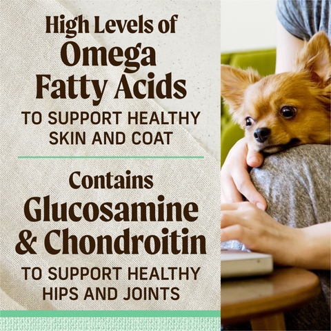 Merrick Lil' Plates Grain Free Senior Real Chicken and Sweet Potato Recipe Dry Dog Food is crafted specifically for small breed senior dogs. With real deboned chicken as the first ingredient, this senior dog food dry recipe helps to build and maintain healthy muscle tissue and energy levels as your dog ages. This grain free dry dog food for small dogs is crafted without grain or gluten ingredients, and every serving includes probiotics for healthy digestion. Glucosamine and chondroitin make a small breed dog food that helps to maintain healthy hips and joints. This chicken dog food with sweet potatoes offers complete and balanced nutrition with omega 3 fatty acids that help maintain a healthy coat and skin. With a perfectly crunchy texture and small dog food kibble size, this healthy dog food helps to reduce plaque and keep your dog’s teeth clean. Merrick dog food recipes are crafted in our Hereford, TX kitchen and cooked in the USA.