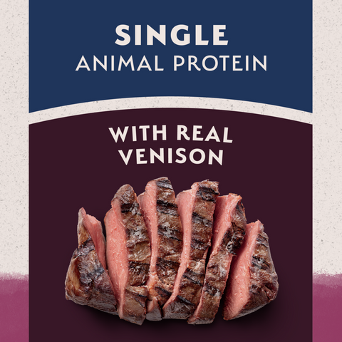 - Real Venison is the single source of animal protein to help avoid common triggers of food sensitivities. This recipe is also poultry free and grain free.