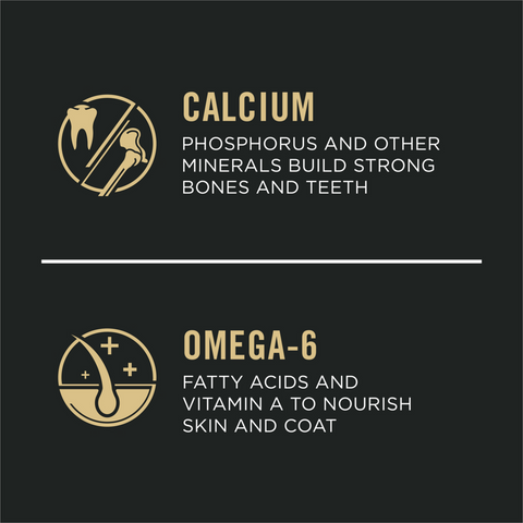 DHA from omega-rich fish oil helps nourish brain and vision development. Rich in antioxidants to help support a puppy’s developing immune system. Calcium, phosphorus and other minerals help build strong teeth and bones.