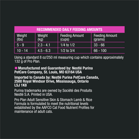 Fill your cat's bowl with the targeted nutrition in Purina Pro Plan Brand Cat Food Sensitive Skin and Stomach Natural Turkey and Oat Meal Formula With Added Vitamins, Minerals and Nutrients adult dry cat food. This SPECIALIZED recipe supports a cat's healthy skin, shiny coat and digestive health. This formula is high in protein to meet your cat's unique nutritional needs and features real turkey as the first ingredient. Rice and oat meal are included in this highly digestible formula, which is gentle on your cat's stomach. In addition, guaranteed live probiotics support her overall digestive and immune health, giving her a meal to help her thrive. Finally, this sensitive skin and stomach cat food is formulated without corn, wheat or soy and does not contain any artificial colors, flavors or preservatives, giving you added peace of mind. Help your cat live her best life when you feed her this natural formula with added vitamins, minerals and nutrients, which is designed especially for cats with sensitive skin and stomachs.