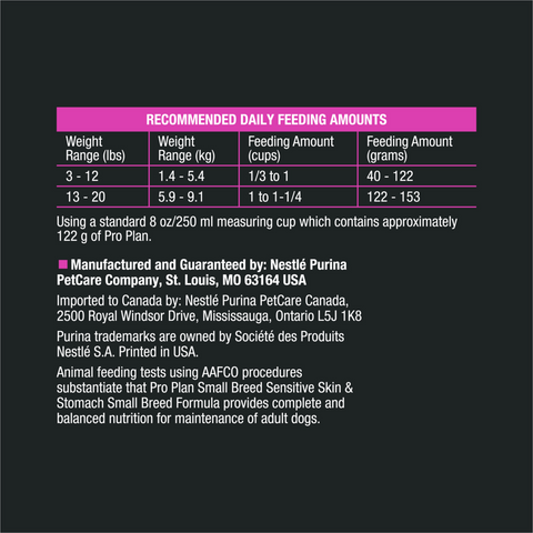 Specialized dry formula that nourishes skin and coat and supports the digestive health of small breed dogs. Made with sunflower oil rich in omega-6 fatty acids for healthy skin and coat as well as rice that is easily digestible.