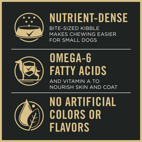 Shredded blend formula made with chicken as the first ingredient. High in protein to meet the needs of highly active small breed dogs. And made with calcium, phosphorus and other minerals to maintain strong bones and teeth.