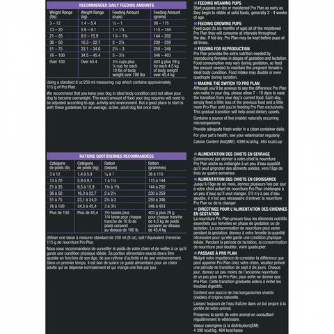 - This Purina Pro Plan dog food offers 100% complete and balanced nutrition for highly active dogs, including DHA, to help nourish brain and vision development
