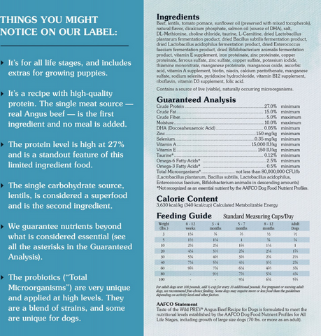 PREY Angus Beef Recipe for Dogs features pasture-raised Angus beef as the first of just four key ingredients. Despite having limited ingredients, your dog won’t miss out on flavor or nutrition. Guaranteed probiotics help support digestion, while precise levels of vitamins and minerals, guaranteed antioxidants, omega fatty acids and DHA help ensure your dog gets the complete nutrition he or she needs, all with the rich, red-meat taste of beef dogs crave.