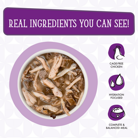 Water Sufficient For Processing, Chicken (Boneless, Skinless Breast), Tuna, Duck, Tapioca Starch, Sunflower Seed Oil, Calcium Lactate, Tricalcium Phosphate, Xanthan Gum, Choline Chloride, Taurine, Zinc Sulfate, Vitamin E Supplement, Nicotinic Acid (Vitamin B3), Ferrous Sulfate, Thiamine Mononitrate (Vitamin B1), Calcium Pantothenate, Vitamin A Supplement, Manganese Sulfate, Riboflavin Supplement (Vitamin B2), Pyridoxine Hydrochloride (Vitamin B6), Vitamin D3 Supplement, Copper Sulfate, Folic Acid, Potassium Iodide, Biotin, Vitamin B12 SupplementGuaranteed Analysis